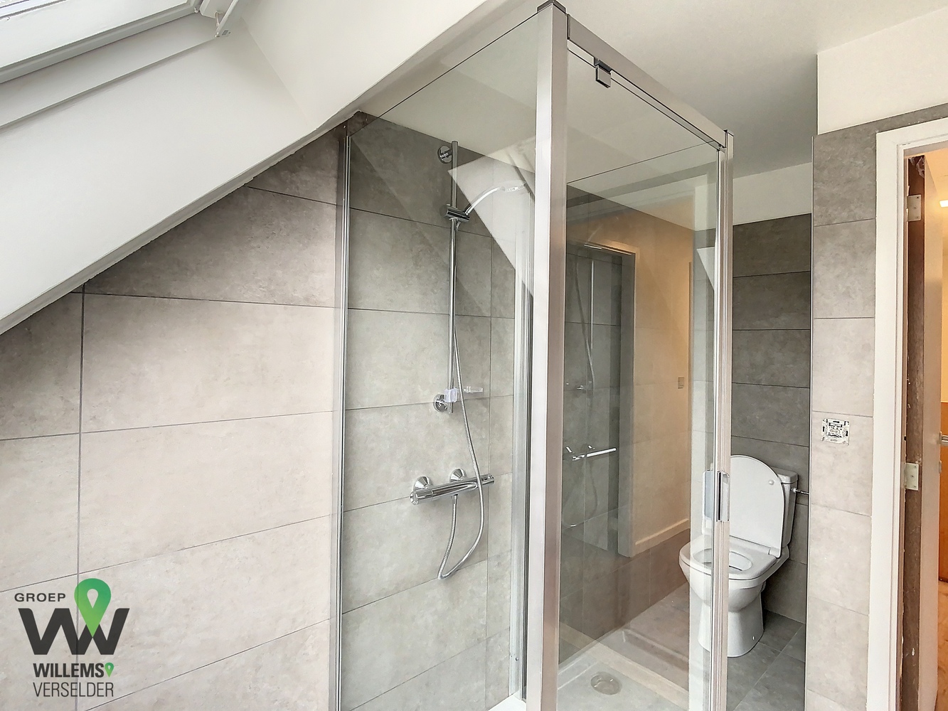 – vernieuwde badkamer met badkamermeubel, toilet en douchecabine