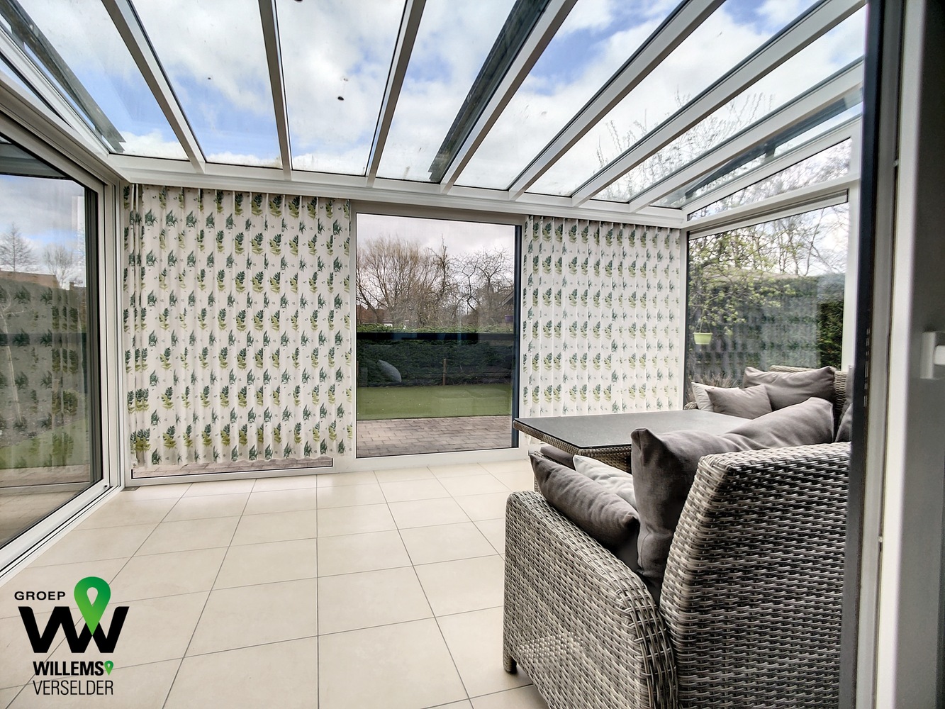 – zonnige veranda met zicht op tuin