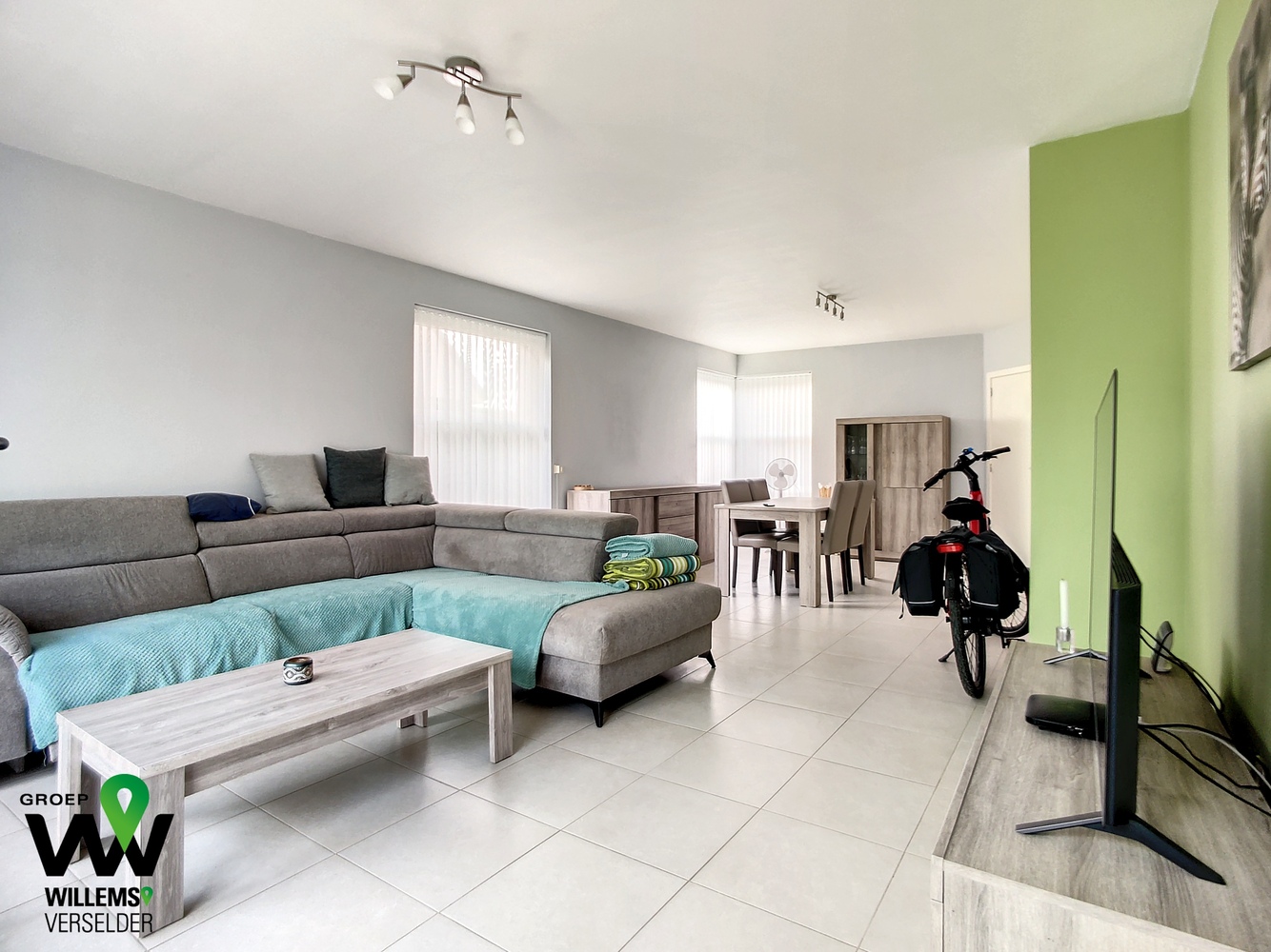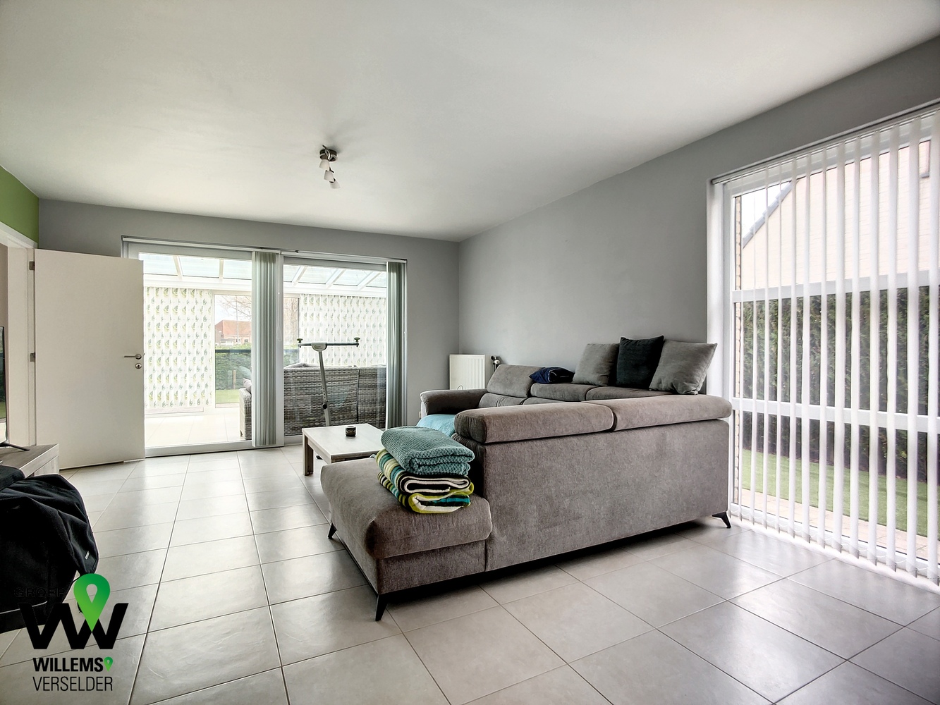 – lichtrijke living voorzien van lamellen